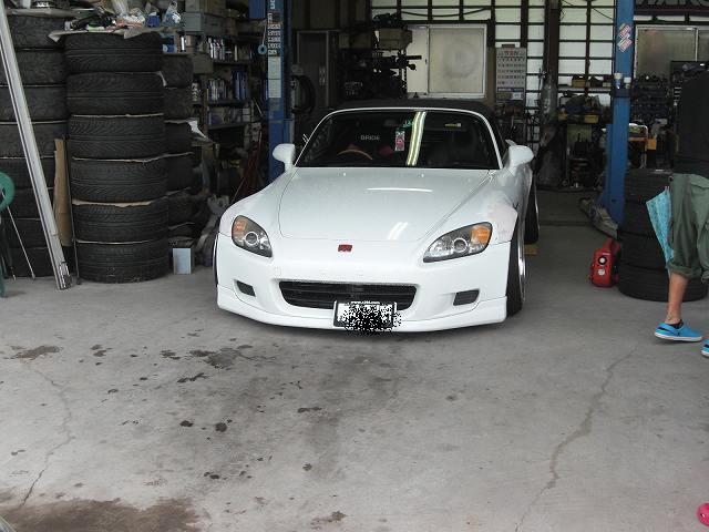 んなっなんと前後共18インチ10J+22のホイルを履いているS2000・・・車高も低い!今までリフトで上げた中で一番苦労したかな。