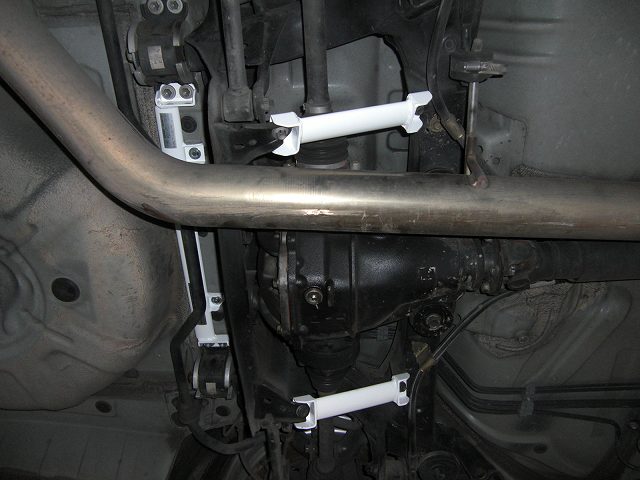 ボールジョイントの交換ついでにフロントのブレーキローターと、Do-Luck製のフロアサポートバー、オクヤマ製のデフメンバーブレースを取り付け