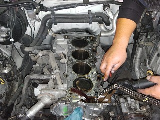 そんな事は気にもせず工場長はヘッドガスケット交換しています。
