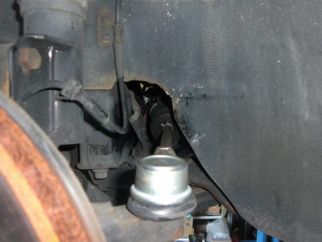 ランサーのタイロッド交換・・・この車えらい奥にステアリングラックがいるから、なかなか手が入らない。
