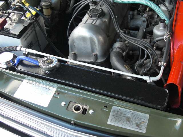 エンジン載せ換え時のチェックのひとつ、ラジエタの圧力チェック・・・特に今やっている車両は昭和46年車なので念入りにね。