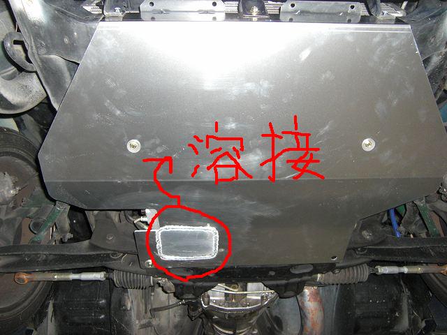 溶接でノーマル用の穴を塞ぎ、トラストオイルパン用に穴を開け直し・・・