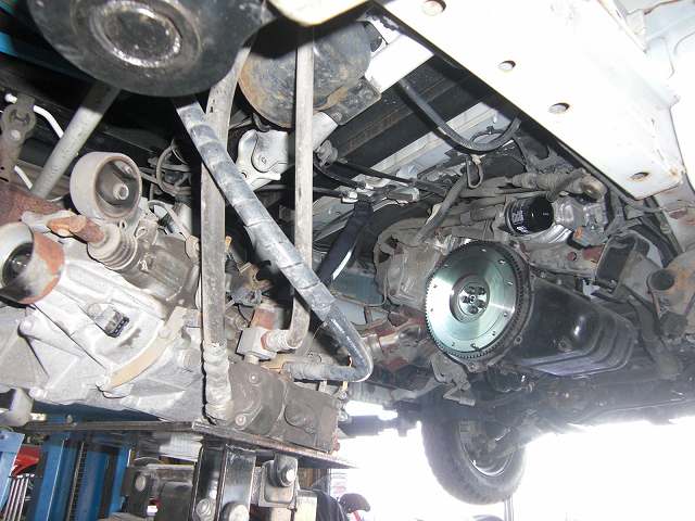 ついでにアルミアンダーガードも装着・・・っと思ったらノーマルオイルパン用の穴(オイル交換用)なので、せっかくだからトラストオイルパン用に加工しましょう。