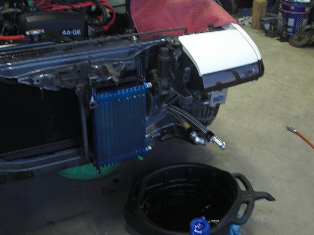 このAE86も今度の日光サーキット走行会に向けてオイルクーラー取り付けやら何やら色々とありまして・・・それでも今日は予定の所まではやったので、きりの良い所で終了!