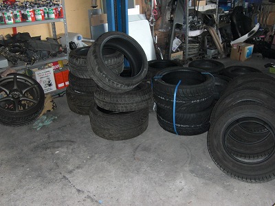 左手前が新品も入れて18インチ8本、右手前15インチ4本、奥にあるのが17インチが8本・・・