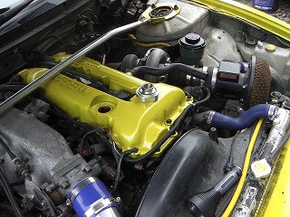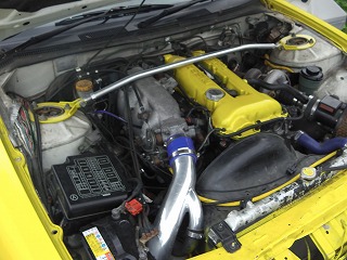 この様な車両はちょくちょく直すので、ここもそうかなぁ〜って思う箇所を診るとだいたいビンゴ!ってな具合・・・同じ様な事がしてある。例えば、ヘッドカバー・・・塗装してあるが(黄色に)オイルフィラーキャップの下・・・通常マスキングをして塗装しない。ま〜9割塗ってある。この車両も塗ってある。小さな事だけれど大事な事。エンジンルームを綺麗に仕上げるショップは仕事も丁寧だしこう言う事はない。チューニング自体小さな事の積み重ね。こう言う事を面倒くさがる自動車屋さんは俺はどうかと思うね。この車両は他にも盛りだくさん・・・配線は束ねてない、バッテリーが固定されてない(これは結構多い)、エアクリも固定されてない(ブラブラしてる)、熱対策がされてない・・・うんざりする。エンジン降ろして他の車両に載せ替えた方が早い気がする・・・