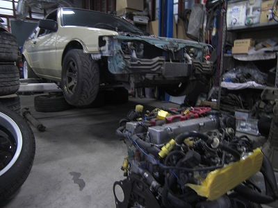 今度参加する走行会までにAE86を仕上げたい・・・と熱い要望があり、ただ今エンジンを載せ換え中。外装もエアロを装着しかっこいいハチロクに仕上げるぞっ!っと妄想は膨らむ・・・