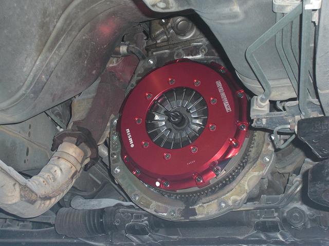 クラッチ交換はS14用ニスモのスーパーカッパーミックス。見えなくなるのはもったいないな。赤くてかっこいい・・・